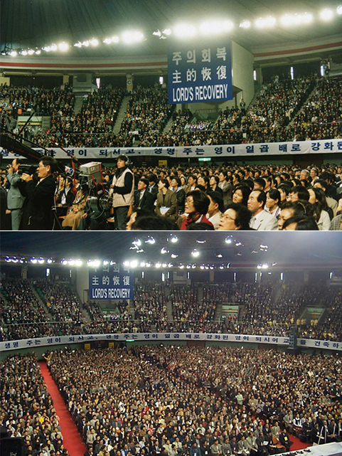 1988년 11월, 위트니스 리 형제의 인도 가운데 2,500여명의 한국 성도들이 함께 모여 특별집회를 열었습니다. 그 집회에서 위트니스 리 형제는 하나님의 경륜과 교회에 관한 이상을 열어주었고, 많은 성도들이 하나님의 갈망과 성경의 중심 이상을 분명하게 보게 되었습니다. 위트니스 리는 이듬해에도 한국에 재차 방문하여 약 3,500명의 성도들에게 말씀을 전했고, 남한 땅에 신성한 계시가 열려졌습니다.