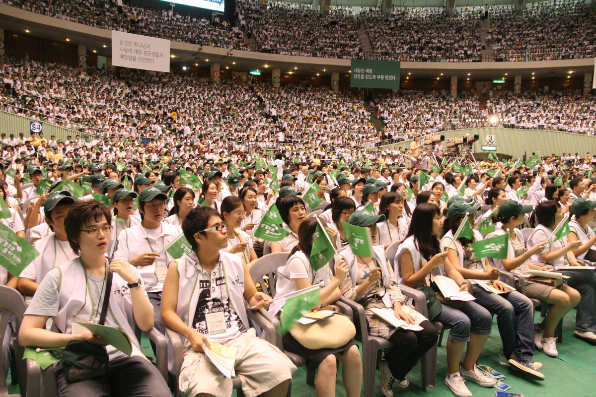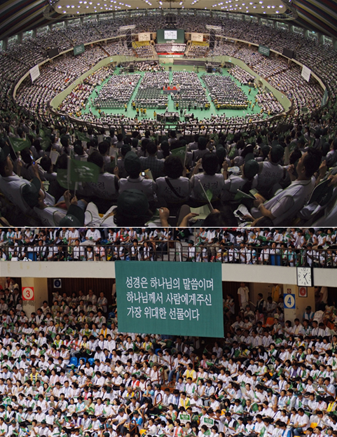 (위)2007년도 성경으로 돌아가자 컨퍼런스(아래)잠실체육관에 모인 1만 6천여명의 성도들