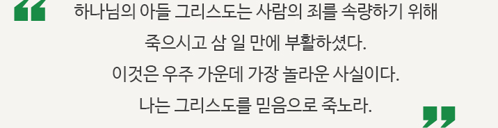 | 믿는이들 | 워치만 니는, 그리스도 안의 믿는이들은 본래 삼일 하나님께서 그분을 담고 그분을 표현하며 그분을 대표하고 그분을 위해 통치하며 그분이 창조하신 만물을 다스릴 그분의 형상을 따라 창조된 영과 혼과 몸의 세 부분으로 된 사람임을 지적했습니다. 창조시 하나님은 다만 사람 안에 영을 창조하여 사람이 그의 영으로 영이신 하나님을 생명으로 영접할 수 있게 했을 뿐, 사람 속에 그분의 생명과 성품을 넣어주지 않으셨습니다. 그러나 사람은 사탄의 유혹에 넘어가 하나님의 명령을 좇지 않음으로 사탄에 의해 부패되었고 사탄의 악한 본성을 지닌 죄인으로 조성되었습니다. 이러므로 하나님은 친히 사람이 되사 타락한 인간의 육체를 입으셨습니다. 예수 그리스도라 불리운 이 사람은 육신 안에서 죄인을 위해 죽임을 당하고 그들의 죄들을 속량하시고 죄인 자신과 사탄, 세상 및 옛창조 전체를 끝내셨습니다. 죽으신 후 그분의 온 존재는 부활하였고, 부활 안에서 생명 주는 영이 되셨습니다. 그분은 그분을 믿고 영접한 죄인들 안으로 들어가 그들과 하나가 되어 그들을 거듭나게 하시고 하나님의 자녀가 되게 하셨고 그분의 지체로서 그분과 하나되어 그분의 유기적인 몸인 교회를 구성하여 그분의 충만으로서 그분의 단체적인 표현이 되게 하셨습니다.예수 그리스도 안으로 믿은 죄인들은 그리스도의 추종자, 그리스도에게 속한 사람인 그리스도인이라 불리웁니다. 그들은 본래 하나님의 옛창조에 속했지만 그리스도 안으로 믿어 거듭남으로 말미암아 하나님의 새창조가 되었으며 하나님의 생명과 본성을 소유하여 하나님의 생명과 그분의 영으로 행하고 하나님의 위하여 살고 일합니다. 그들은 영 안에서 함께 건축되어 하나님의 집이요 그리스도의 몸이요 그리스도의 충만인 하나님의 교회가 되어 그리스도께서 다시 오심을 기다리고 있으며, 그때 그분은 그들을 들어올려 변화시키고 그분의 영광 안으로 받아들여 영원히 그분과 함께 있게 하실 것입니다. 그들 가운데 구원받고나서 그리스도의 이기는 생명과 성령 안에 있는 부활 능력으로 말미암아 이기는 생활을 함으로 하나님의 계획(경륜)을 완성하는 일을 하고 그분이 다시 오실 때 먼저 성숙한 사람들이 있는데 이들은 천년 왕국에서 그분과 함께 공동왕이 되어 세상을 다스릴 상급을 얻게 될 것입니다. 그들 가운데 이와 같이 먼저 성숙하지 않은 사람들은 천년 왕국 시대에 그분의 징계를 받게 되는데, 그 목적은 성숙하여 천년 왕국 후의 새 하늘과 새 땅에서 먼저 성숙한 믿는이들과 함께 새 예루살렘의 구성 요소가 되어 영원토록 새 예루살렘 안에서 하나님의 구원의 궁극적인 축복과 누림에 참여하게 하기 위한 것입니다. |