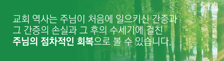 신약 시대에 걸쳐 주님께는 항상 이 땅 위에서 주님의 간증을 지킬 남은 자들, ‘나의 말을 지켰고, 나의 이름을 부인하지 않은(계 3:8)이들’이 있었습니다. 사도들의 때부터 시작하여 점차적으로 영적 하락이 시작되고, 어둠은 중세 암흑시기를 거쳐 지속되었습니다. 결국 기독교는 말씀의 빛과, 그리스도의 체험과, 교회 생활의 실행과, 심지어는 그리스도 안에서 믿음으로 구원받는 것을 포함해 모든 것을 잃었습니다. 그런 후에야 비로소 회복의 흐름이 밀려들어오기 시작되었습니다. 그러한 흐름 속에 소수의 신실한 성도들이 주님의 간증으로 서 있었고, 그들은 하나님의 회복의 일을 지속해 왔습니다. 그들은 이전 세대들이 쌓아올린 것 위로 계속 건축해왔고, 회복은 크게 전진했습니다. 이제 주님의 회복은 찬란한 광명 안에 영광으로 충만합니다. 주님의 회복 앞에는 시온의 대로가 펼쳐져 있습니다. 앞 세대로부터 이어지고 전진된 회복의 모든 영적 유산은 우리의 소유가 되었습니다. 우리는 시대의 마지막 경주자로서, 하나님의 영원한 경륜을 성취하기 위해 태만하지 말고 회복의 일을 계속하여 주님께서 다시 오실 때 “점이나 주름이나 그 같은 것들이 없는, 거룩하고 흠이 없는 영광스러운 교회로”(엡 5:27) 서 있기를 원합니다.
