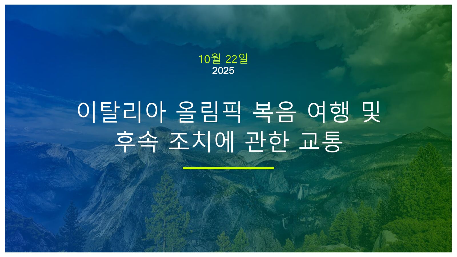 이탈리아 올림픽 복음 여행 및 후속 조치에 관한 교통