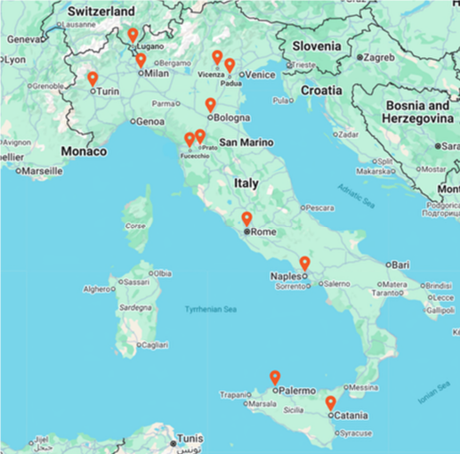 2025년 12월 초에 시작된 첫 번째 복음 여행(성화 봉송 1, TR1)부터 마지막 복음 여행(올림픽 2, OL2)이 마칠 때까지, 주님께서 우리의 움직임 가운데서 움직이고 계셨다는 것이 분명하게 나타났습니다! 그 가운데 “바퀴 안에 바퀴”와 같은 움직임이 있었고, 이 팀들이 방문했던 곳에 많은 씨들이 뿌려졌습니다(위 지도는 방문한 모든 도시를 보여줍니다). 9개의 유럽의 다른 나라들(영국, 덴마크, 프랑스, 독일, 노르웨이, 폴란드, 포르투갈, 러시아, 스위스)에서 온 246명의 성도들에 더하여 미국, 호주, 캐나다, 중국, 가나, 말레이시아, 싱가포르, 한국, 스페인, 대만에서 온 성도들과 이탈리아 현지의 62명의 성도들이 함께하여 주님께서 이탈리아에서 그분의 몸의 움직임을 축복하실 길을 가지게 되었습니다.